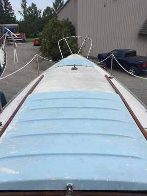 Main and jib included. The boat has excellent pedigree having been designed by Halsey Herreshoff. It is a solid sailing pocket cruiser with 6ft standing headroom. Outboard electric start motor is included, cable controlled. She also has a furling genoa. This boat is sail away ready.